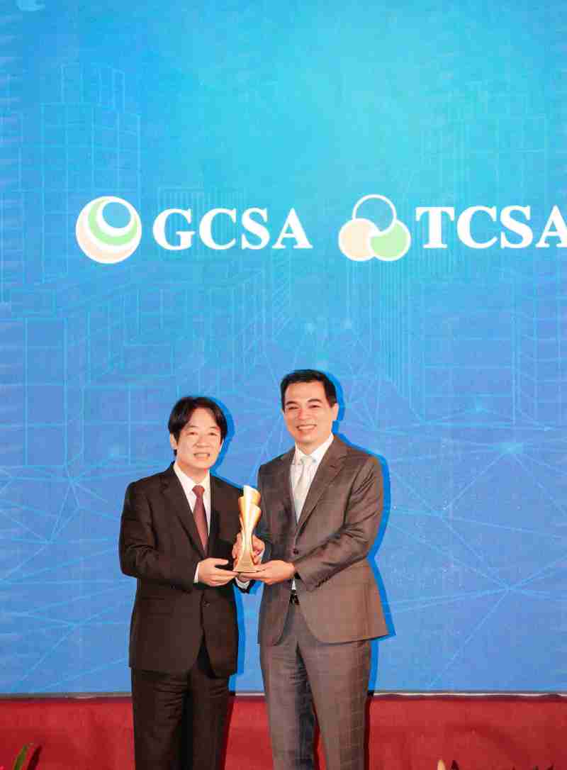 达全方位永续表现获全球永续奖及台湾永续奖肯定,,,由副总统赖清德颁奖 (左),,人生就是博总经理柯富仁 (右) 代表领奖