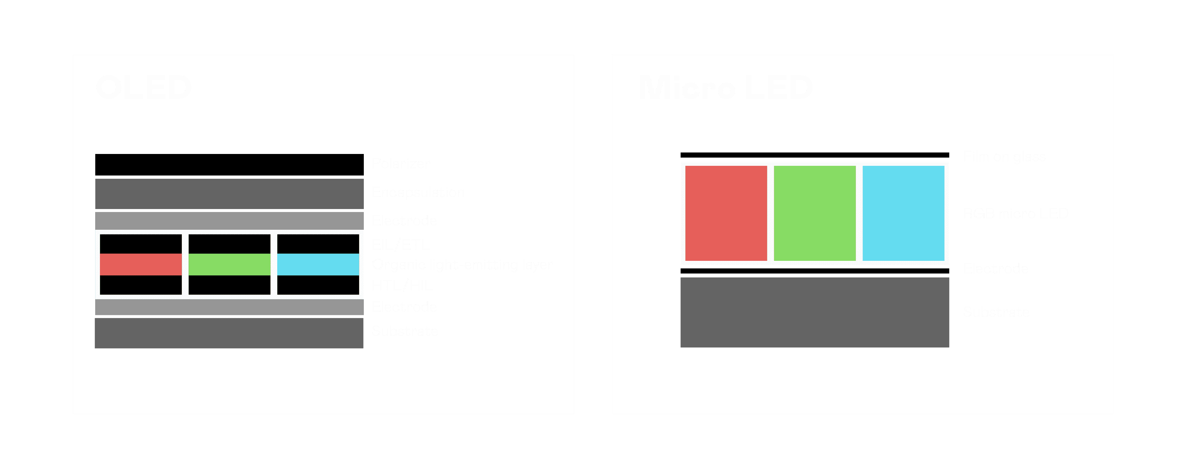 以 LED 做为显示画素,,,,可让 LED 的发光效率发挥到极致,,从而让显示器具备优异的亮度表现,,,不论是在户外或室内,,,,均具备出众的显示效果。。同时,,与使用有机材料的 OLED 相比,,,,LED 具备更稳定、、、寿命更长的特性,,,不仅不会有画面烙印问题,,,,而且更不容易出现故障、、、坏点。。。